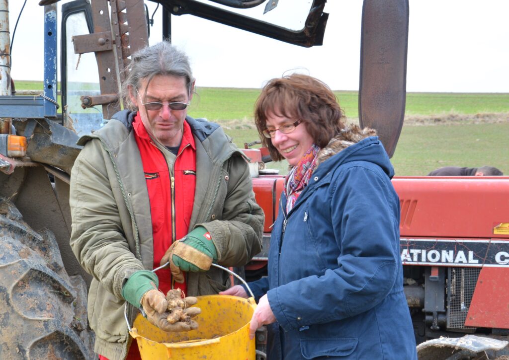 Während wir noch unsere letzten Wintersellerieknollen waschen, arbeiten Darek und Jutta bereits am Anbaujahr 2026. Darek hat die frostigen Tage genutzt und unsere Äcker umgegraben, so dass Väterchen Frost (also nicht der böse) die Gelegenheit hat, seine Frostkristalle auf die Erdkrummen zu legen. Dann drückt der liebe Frosti auf den Auslöser und sprengt mit den Dynamitkristallen die Krume und fein krümeliger Ackerboden entsteht, aus dem die jungen Pflanzen ohne übermäßige Anstrengung groß werden können. Mutter Natur hat dieses Jahr sicher noch ein paar andere Eskapaden auf Lager!
