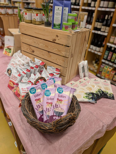 Unser Sortiment an asiatischen Spezialitäten pflegen wir bereits seit einigen Jahren intensiv mit z.B. Sushi Reis, Sojasoße, Kimchi und natürlich auch den superhippen Ramen. Dazu gesellt sich der Matcha-Pinsel mit dem man seine Chai-Matcha-Latte mit rhythmisch hektagonförmigen Quirlbewegungen perfekt aufschlagen kann (alle 6 Hektagone bitte den Matchabessen einmal mit Schwung auf das Matchagemisch aufschlagen lassen, um die volle Chi-Power zu entfesseln) – das passende Matcha haben wir natürlich auch.