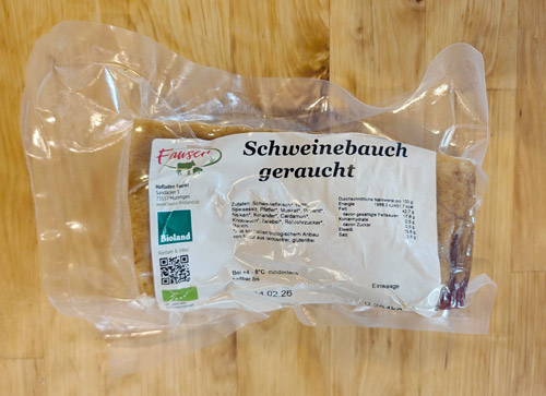 Da ich noch einen gerauchten Schweinebauch im Kühlschrank finde, werfe ich den auch noch in den Topf – geht aber bis dorthin auch ohne oder sicher auch mit einem Brocken Räuchertofu. Sobald es brodelt, habe ich noch genau 20 Minuten, Deckel drauf und alle Schotten schließen. Ich setze schonmal das Wasser für die Spätzle auf, die ich dieses Mal nicht selbst mache (kriege ich gerade irgendwie nicht richtig hin). Mittlerweile ist der Ring der Druckanzeige kurz vor dem Rausschießen, also schnell auf Stufe 3 runterdrehen (16 Minuten). Bei Minute 11 kocht endlich das Wasser für die Spätzle, mit Salz nicht knausern und die ganze Packung rein (muss fürs Mittagskoma reichen).