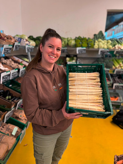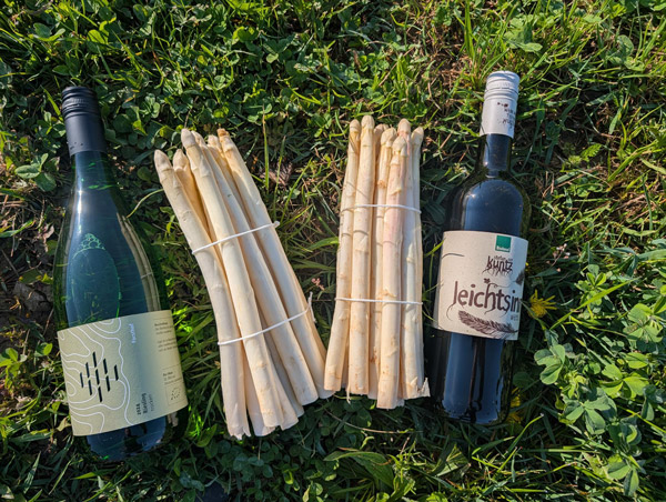 Erdbeere trifft irgendwie immer Spargel. Ich weiß auch nicht wieso, vielleicht sind die aphrodisierenden Inhaltsstoffe der Lustgewächse schuld. Auf jeden Fall bekommen wir unseren Bioland-Spargel von Armin Kreisemaier aus Ludwigshafen über unseren Erdbeer-Eros Swen Seemann, der uns in Kürze auch wieder mit frischen Erdbeeren für die Biokiste beliefert.