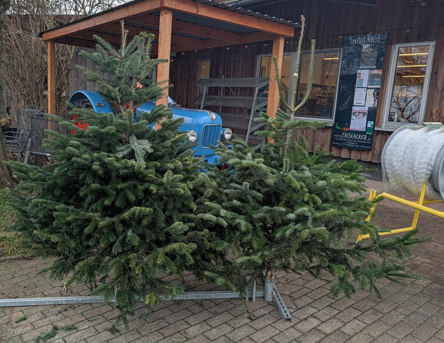 eigentlich unzertrennlich gewachsene Liebe von der schwäbischen Alb. Wir haben noch 2 Weihnachtsbäume, die wir am Montag oder Dienstag noch spontan und eingenetzt sogar bis vor die Haustüre liefern.