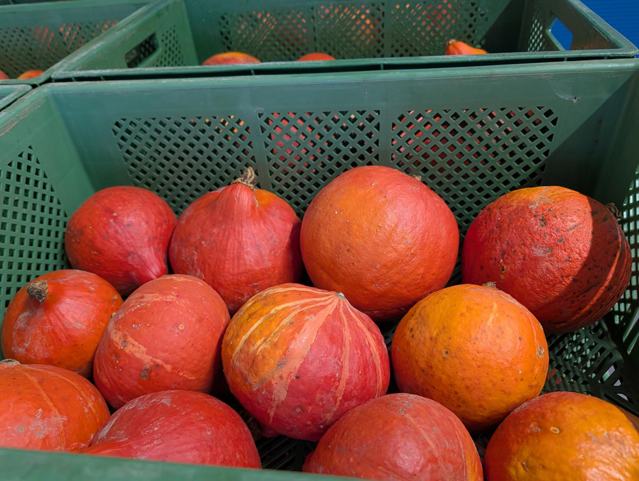 Unsere letzten eigenen Hokkaidos würden gerne noch vor der Winterpause zu Ihnen auf die Reise gehen. Vielseitig einsetzbar von der Kürbissuppe bis zum Kuchen hin zu weihnachtlichen Kürbisplätzchen…der vollumfänglich verwertbare Allround-Kürbis könnte sogar die Zwiebel verdrängen.