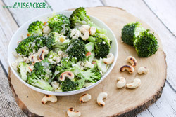 • Den Brokkoli-Salat mit Tahini-Dressing und Cashewnüssen garnieren und servieren.