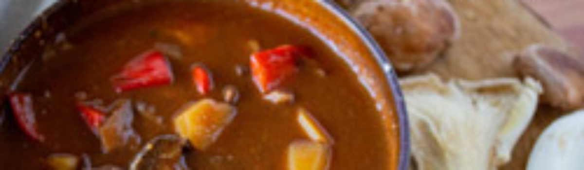 - Wasser zum Kochen aufsetzen und langsam zum Topf hinzugeben. Gemüsebrühe hinzufügen und Kartoffeln, sowie das beiseitegestellte Gemüse hinzugeben. Lorbeerblätter und Gewürze hinzugeben. Nun bei geschlossenem Deckel für 30-45 Minuten garen.