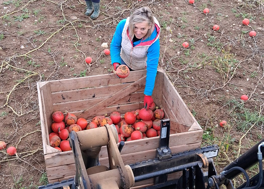 Eigentlich sind die Hokkaidos in Amerika beheimatet gewesen und waren dort noch vieeel größer und bekannt als Hubbard-Kürbis. Vom Geschmack her auch schon nussig, sehr gut lagerfähig aber eine richtig harte und nicht verzehrbare Schale. Ende des 19. Jahrhunderts sind diese Kürbisse über amerikanische Händler nach Japan gekommen und wurden dort so weiter gezüchtet, wie wir sie heute kennen. Ein kräftig nussiger Geschmack und bis auf den Stil, komplett verzehrbar. Erst seit den 1990er Jahren haben die orangen Kürbisse den Weg zu uns gefunden und werden auch sehr beliebt hier angebaut.